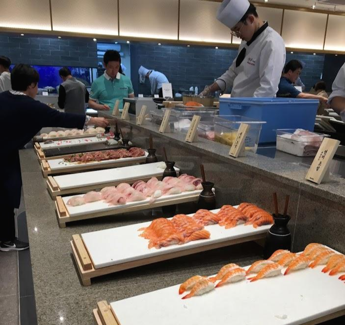 젤 맘에 안드는 부분이지만, 회를 썰어 접시에 던져주는..이 쪽 파트는 판교든 광교든 인상파들이 던져 주신다. 맛난 거 먹을려고 기다려야 함...