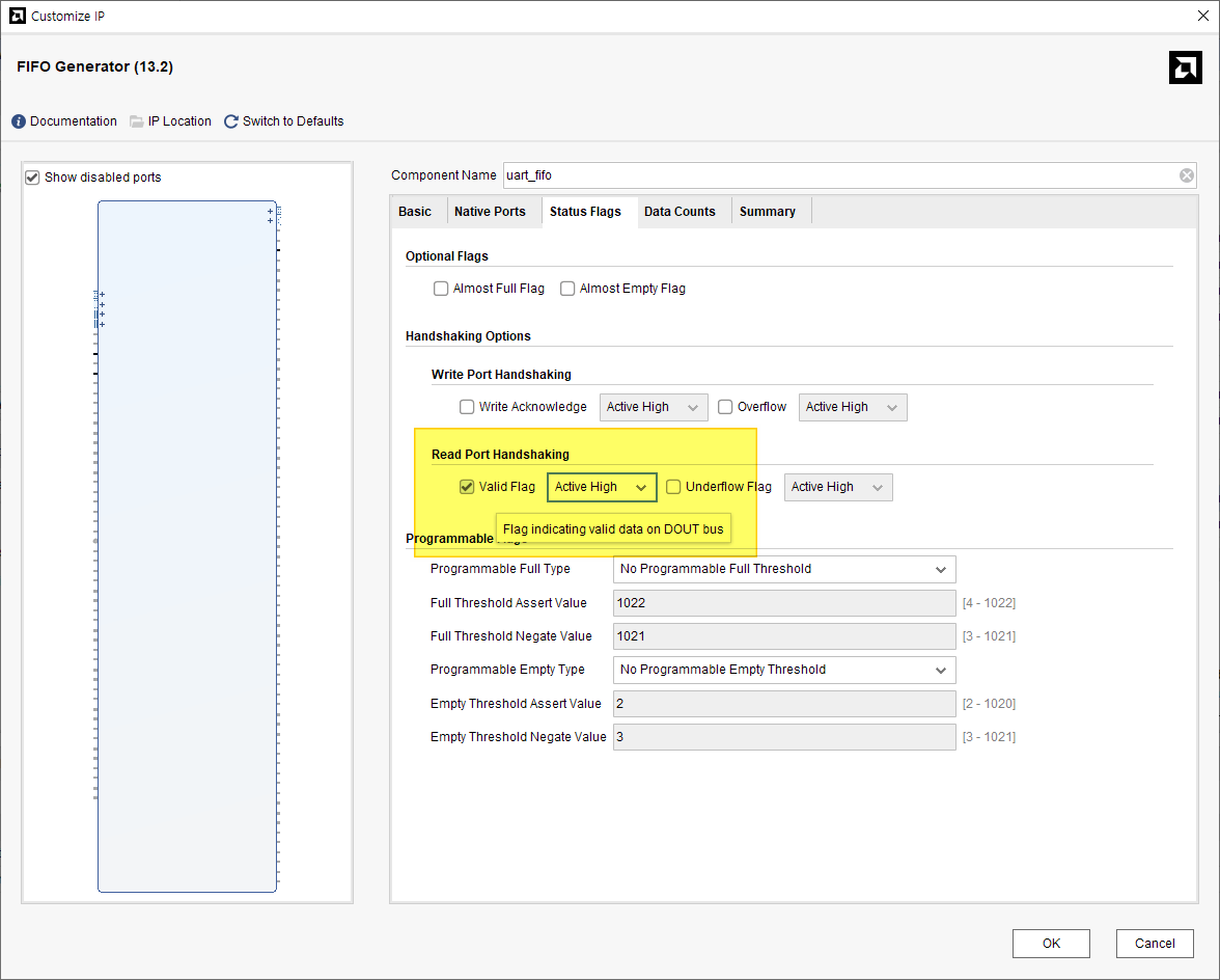 FIFO가 데이터가 있을 때 알려주면 좋을 것 같아 Valid Flag 옵션을 체크했다.