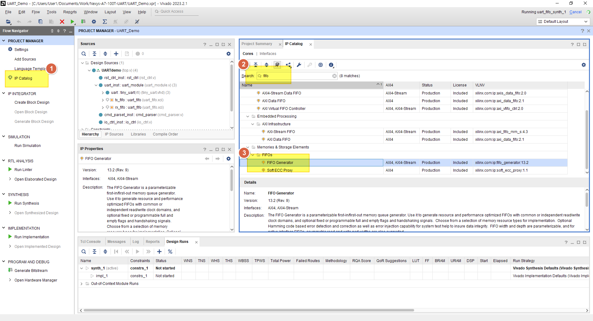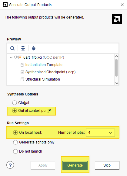 8비트 UART 송수신용 FIFO가 필요해서 일단 IP 검색에서 FIFO Generator 를 선택하면