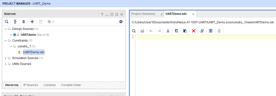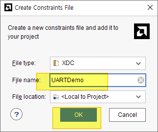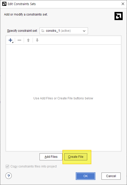 Xilinx Vivado에서 원하는 핀을 할당 하려면 Constraints 파일을 추가해야 한다. 아니면 랜덤으로 막 핀을 Assign 하므로 하드웨어설계도와 맞출 필요가 있다.