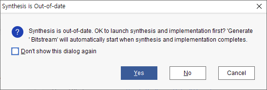 코드가 변경되어서 합성부터 구현까지 다시 하겠다는 창이다. 그냥 "Yes" 누르면 진행된다.