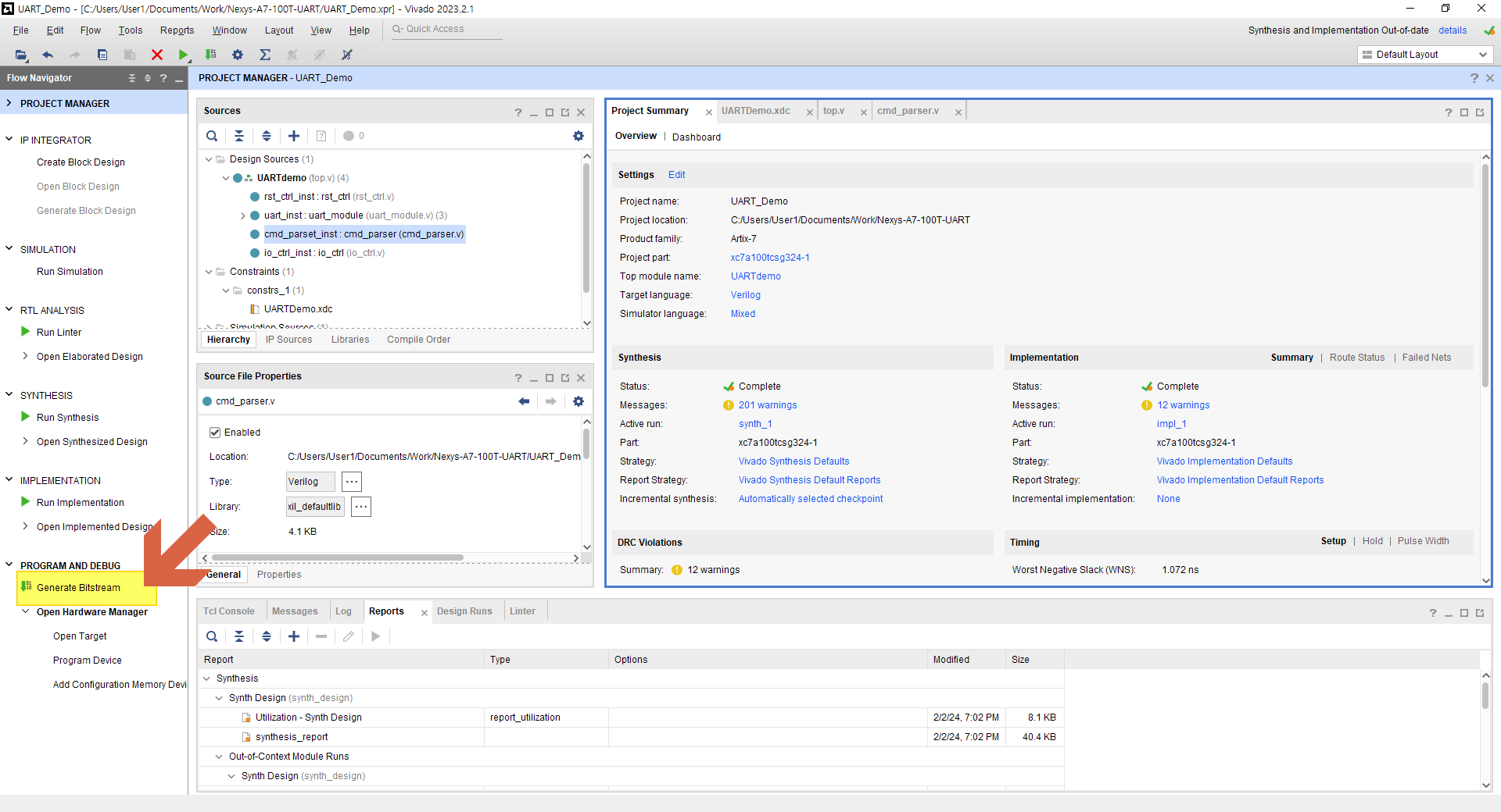먼저 여러 단계를 각각 누르지 말고, "Generate Bitstream" 을 그냥 확 누른다.