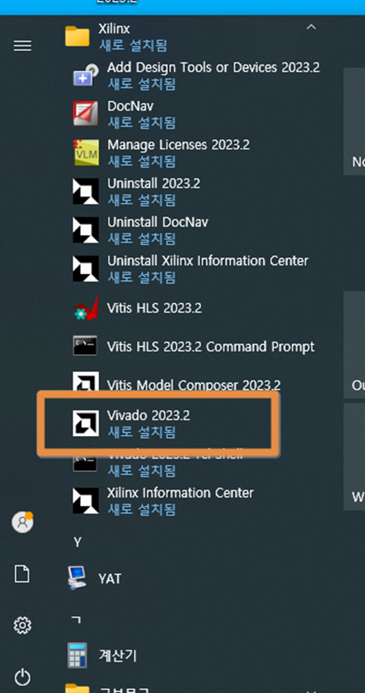 이제 설치가 완료된 Vivado 툴을 실행해 보자. 실행하는 메뉴 위치는 아래 그림을 참고하세요.