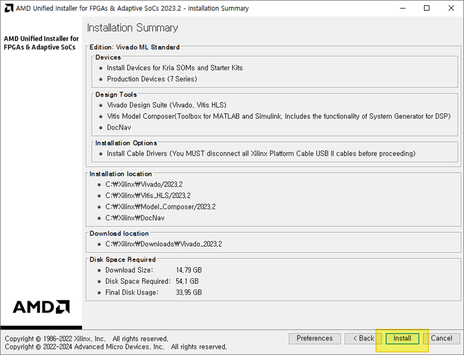 - 이제 설치 작업을 시작한다. "Install" 버튼을 클릭한다.