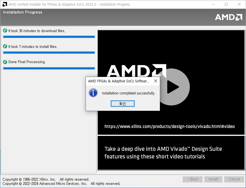- 특별한 문제가 없다면 아래처럼 설치가 완료된다.