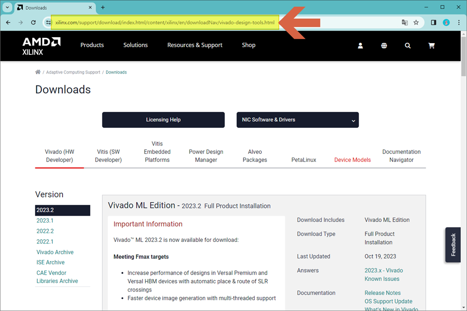 이제 Vivado 툴을 다운로드 하면 된다. 해당 툴을 다운로드 하는 경로는 아래와 같다.