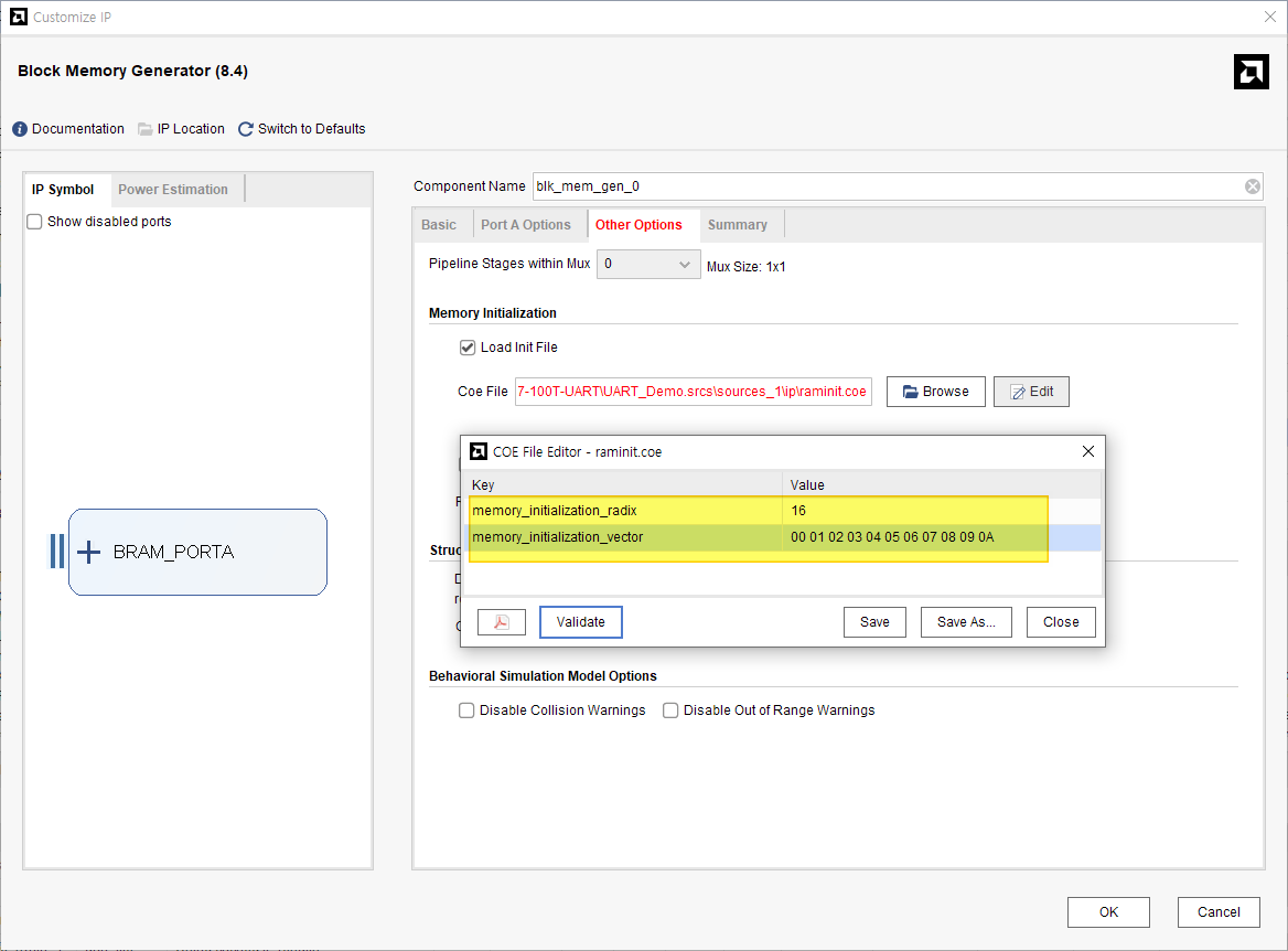 Vivado 에서 RAM을 만들때 초기값을 넣어 줄 수 있다. 파일 포맷은 coe 파일인데 Vivado 에서 바로 에디팅 할 수 있다.