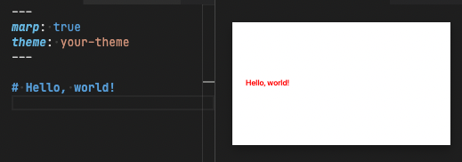 /* @theme your-theme */ @import 'default'; h1 { color: red; }- Put markdown.md into the created folder.