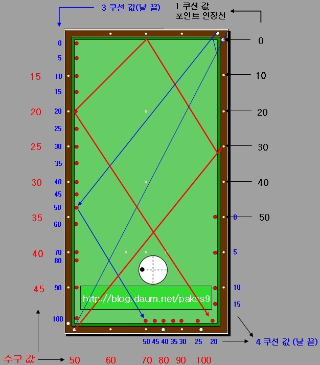 2019/12/28 - [Life/운동] - 당구 레슨 3쿠션 시스템 초보 강의 - 로드리게스 시스템 중간 포인트 쉽게 계산