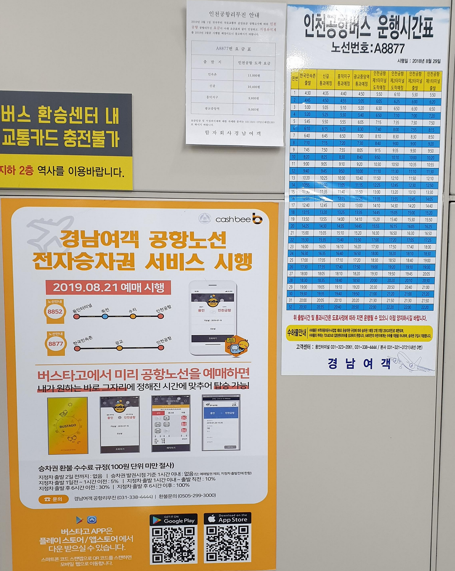 최근에 찍은 광교 중앙역 인천공항 버스 시간표 사진이다.