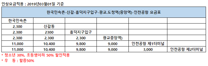 광교 인천공항 버스 요금표는 아래와 같다. 약간 올랐나? ^^