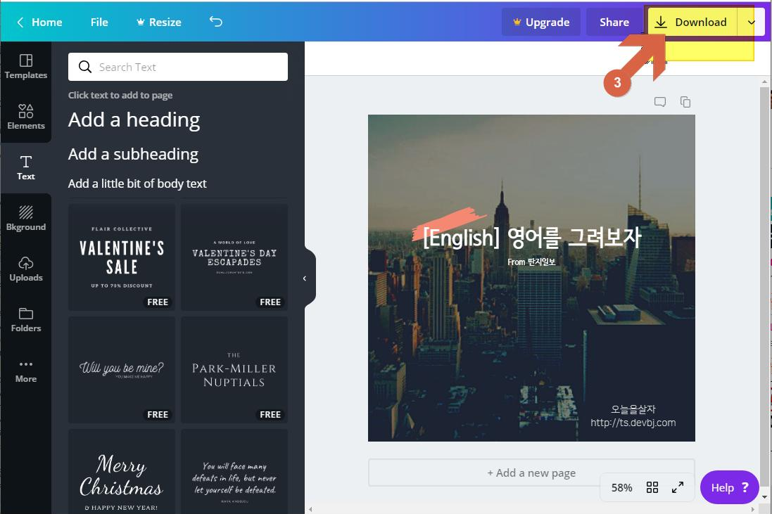 회원가입 후, 아주 쉽게 클릭으로 타이틀 카드 그림을 만들 수 있다.