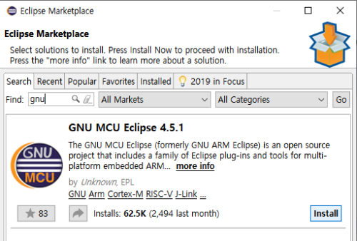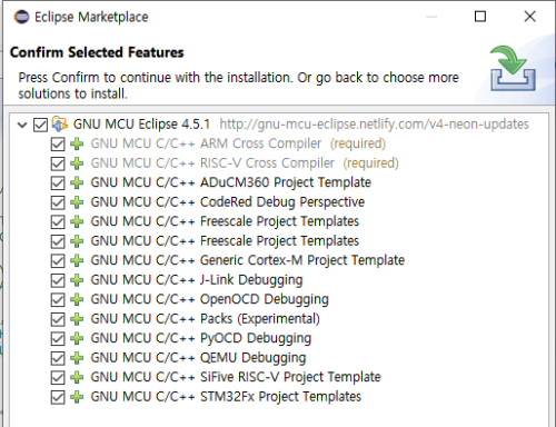그리고, GNU toolchain 도 따라 번거롭게 설치할 필요 없이 Eclipse Market place 에서 플러그인 처럼 설치하면 금방 환경설정이 된다.