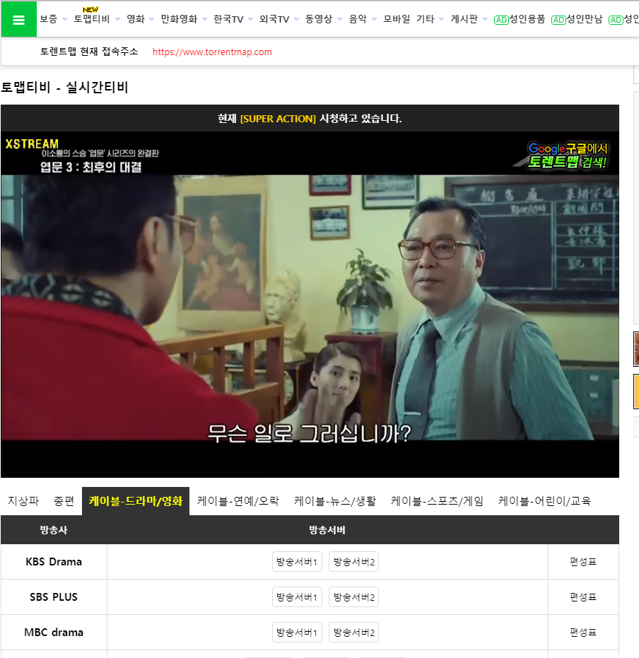 ⓣ http://www.torrentmap.com/live/tv.php - 토맵티비 <- 2020.04.27 접속 불가