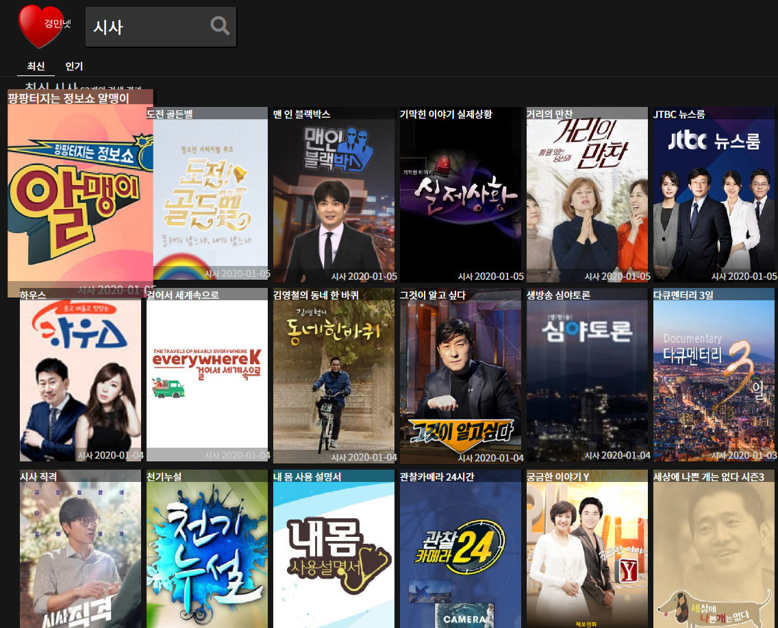 실시간으로 방송 볼 수 있는 사이트.