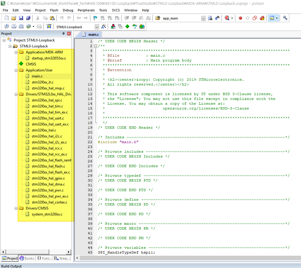 W6100 EVB가 STM32 칩셋을 사용하고 있어서, 기본적으로 이 환경으로 제공되고 있다.