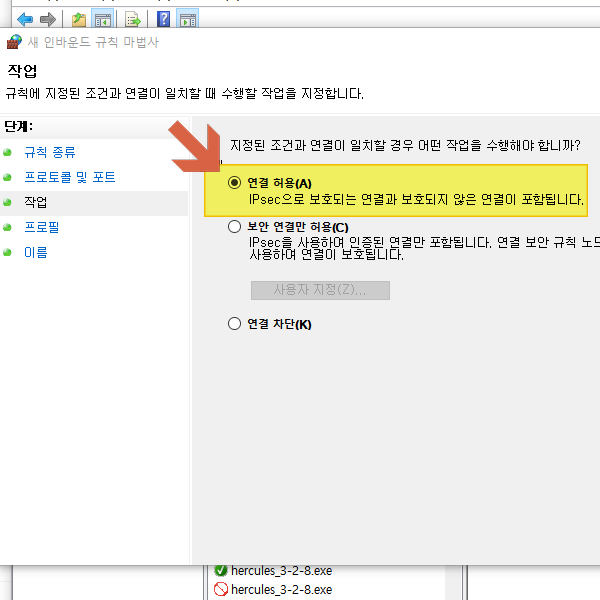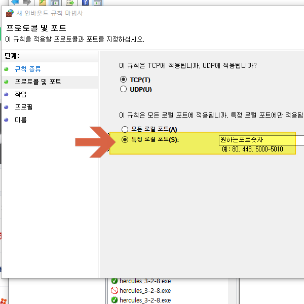 저절로 창이 친절하게 나타나서 포트를 허용하겠습니까? 물어보면 좋으련만