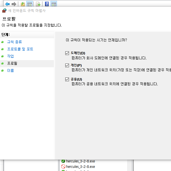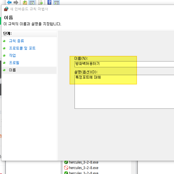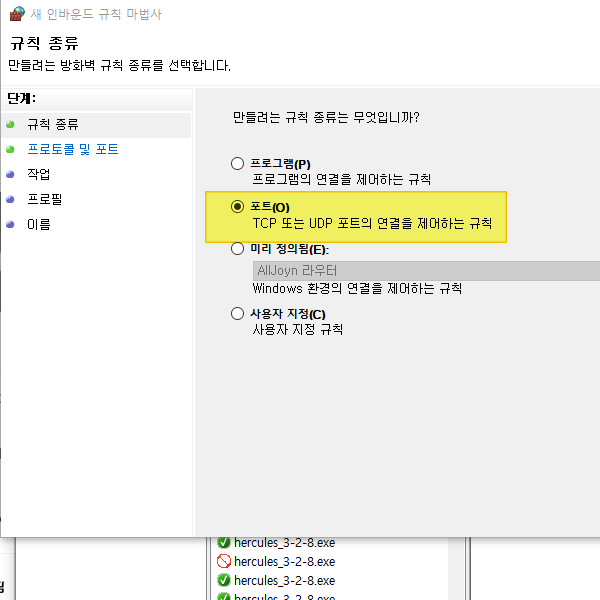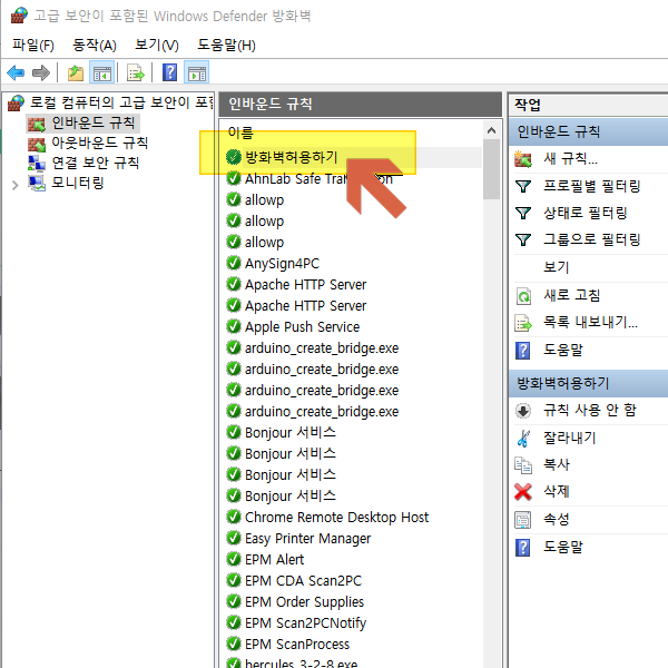 저절로 창이 친절하게 나타나서 포트를 허용하겠습니까? 물어보면 좋으련만