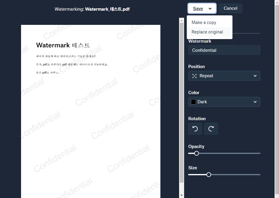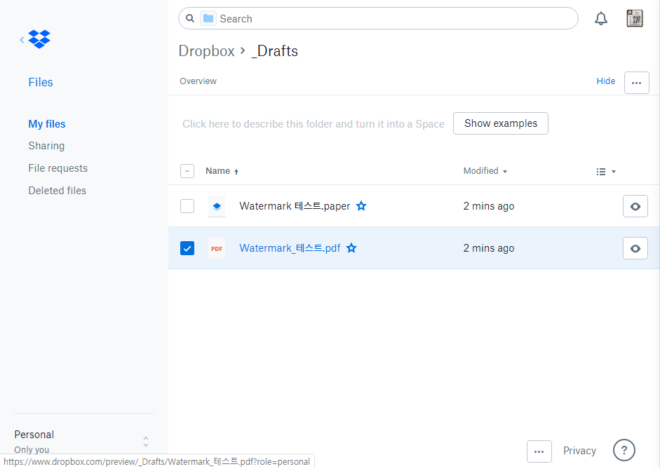 사진과 PDF에 워터마크 적용 - Dropbox