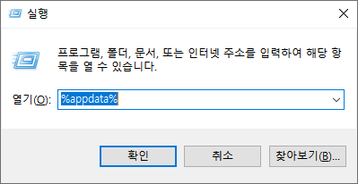 1. CMD(윈도우키)+R 을 누르고, %appdata% 라고 입력한다.