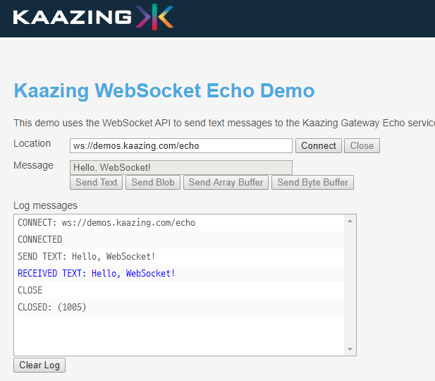 ws/wss 테스트: http://demos.kaazing.com/echo/index.html ssl/tls 가 적용되는 버전은 wss:// 를 사용하면 된다.
