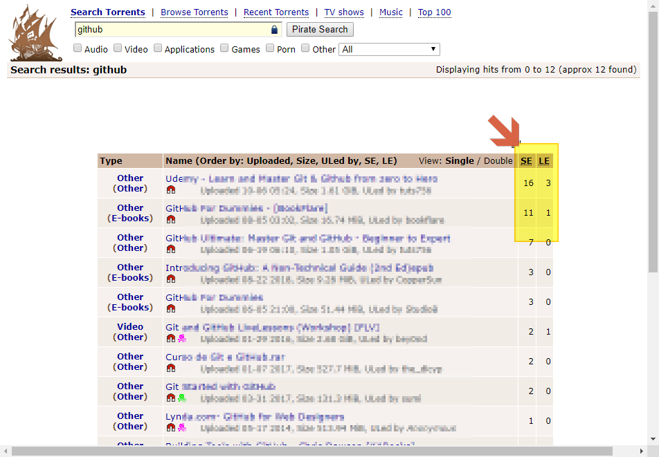 2. 검색화면에서 Seeders, Leechers 가 많은 자료를 필히 선택해야 한다.