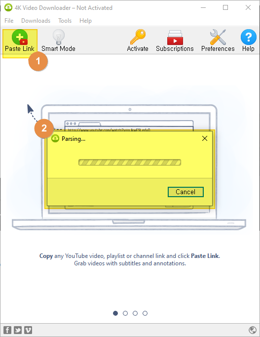 그럼 다시, 4K Video Downloader 프로그램으로 돌아가서, 아래 1번 "Paste Link" 버튼을 누르면 사실상 끝이다.