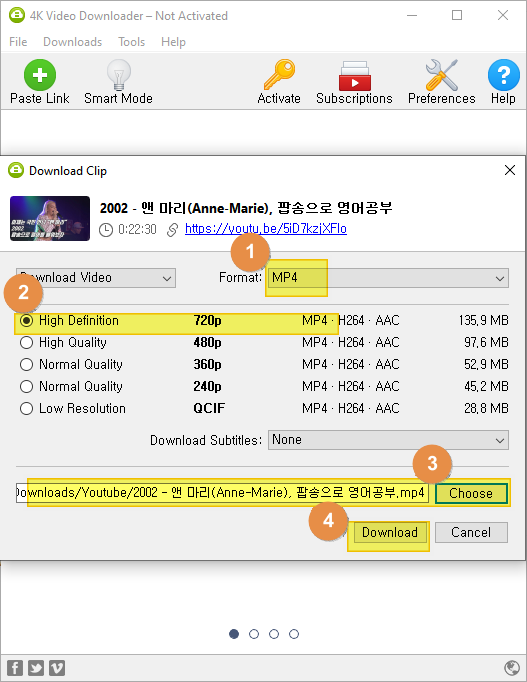 유튜브 동영상 가요 팝송 다운로드하기 with 4K Video Downloader