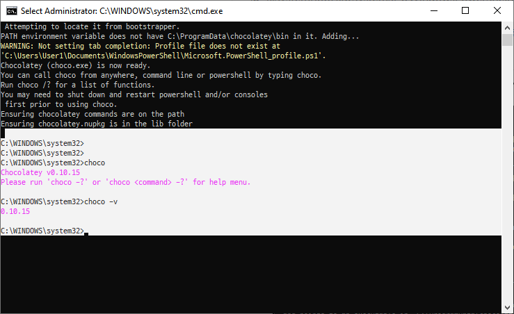 @"%SystemRoot%\System32\WindowsPowerShell\v1.0\powershell.exe" -NoProfile -InputFormat None -ExecutionPolicy Bypass -Command "iex ((New-Object System.Net.WebClient).DownloadString('https://chocolatey.org/install.ps1'))" && SET "PATH=%PATH%;%ALLUSERSPROFILE%\chocolatey\bin"