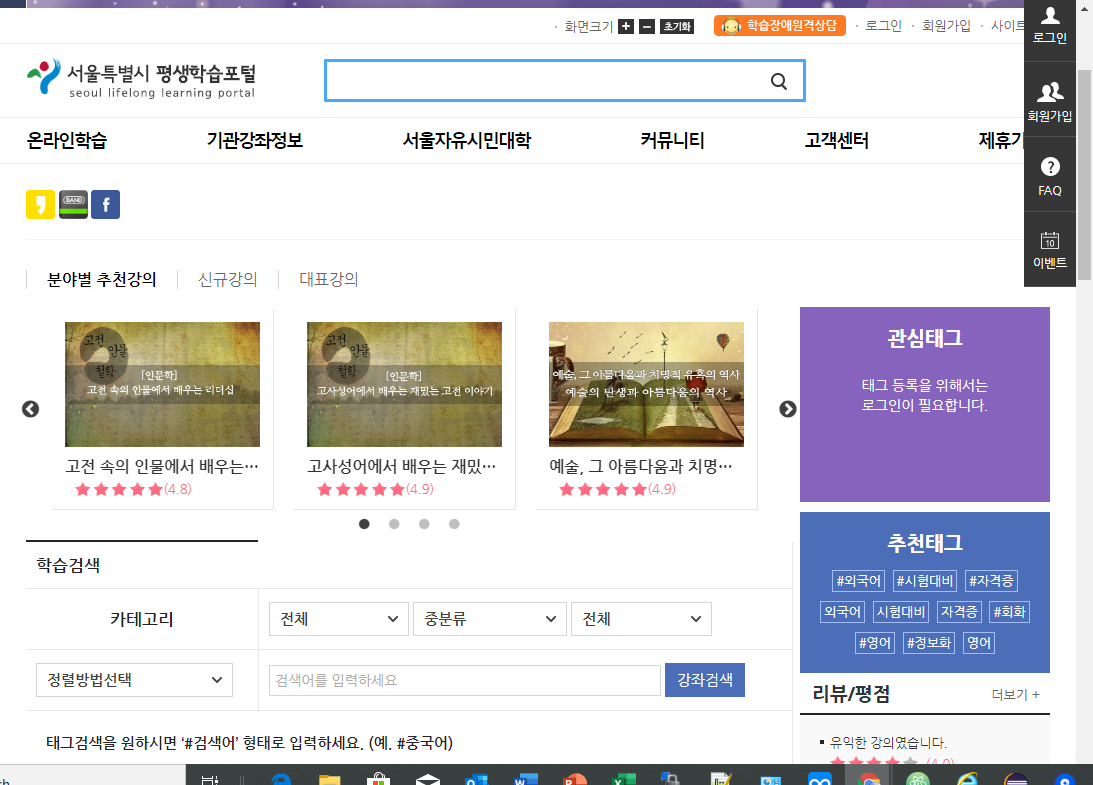 개인적으로는 서울시 무료 평생학습 사이트 보다 200% 나아 보이네.