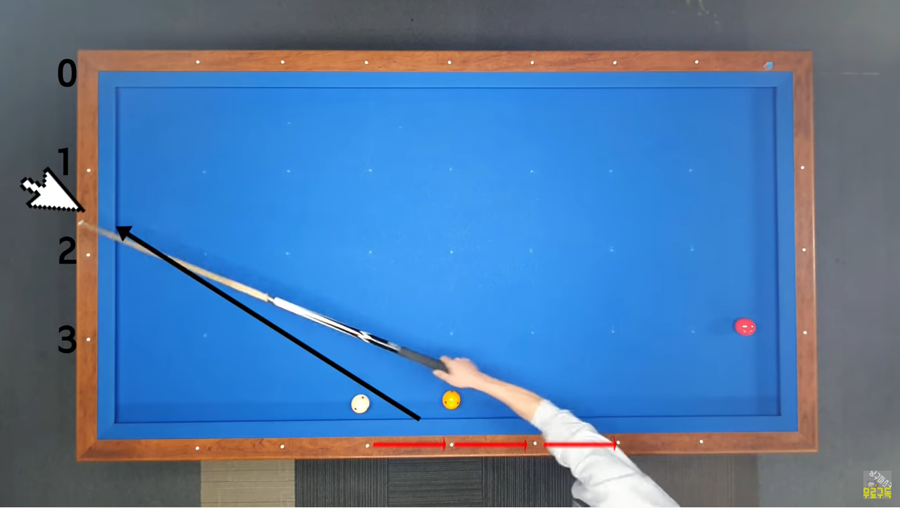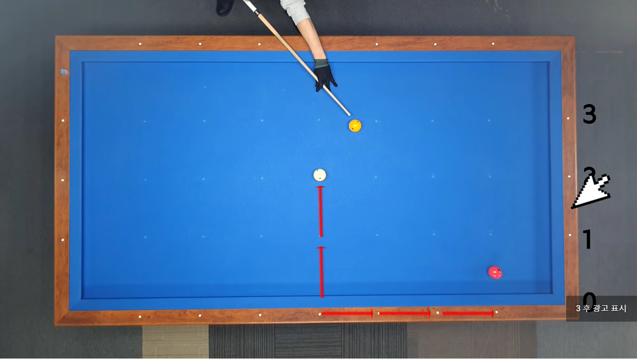 즉, 앞돌리기 짧게 치는 것이니 실제 맞춰야 하는 곳과 흰공의 포인트 차이는 3포인트