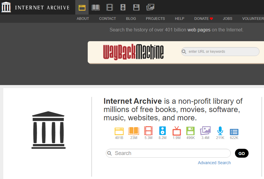 🚎 https://archive.org/ - 웹사이트와 디지털 컨텐츠를 수집하여 무료로 공개하는 비영리 프로젝트