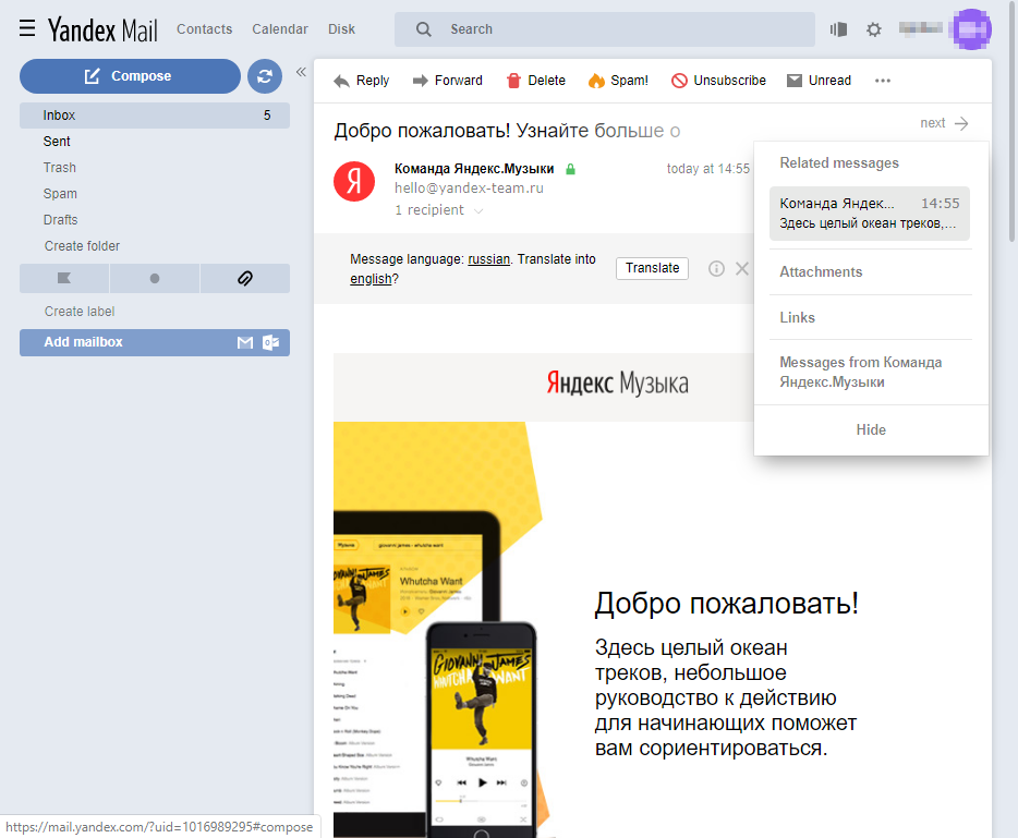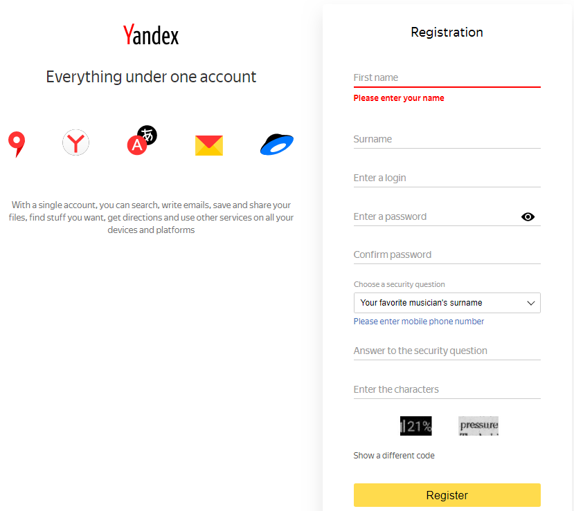 (사용자 등록을 하면 따로 yandex.com 에 계정 생성을 한 것과 동일하게 로그인 가능하도록 되어 있다)