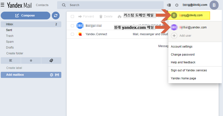 별도의 비용없이 yandex.com 을 이용하면 자신의 도메인 이름의 고유한 이메일 주소를 가질 수 있다.