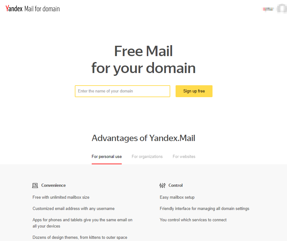 yandex.com 을 이용하면 자신의 도메인 이름의 고유한 이메일 주소를 가질 수 있다.