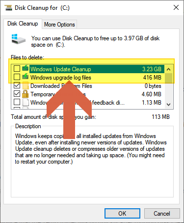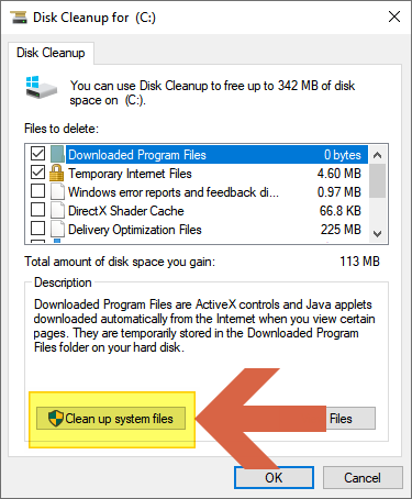 여기서도 아까 언급한 휴지통 비우기, 임시파일 정리하기 등은 쉽게 할 수 있다. 여기서 아래 Clean up system files 라는 버튼을 누르면 윈도우 업데이트 임시파일들 까지 몽땅 지워서 하드 디스크 용량을 더 확보할 수 있게 된다.