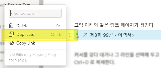 아래 예제 페이지 처럼 복제할 수 있는 메뉴가 뜨지 않는다. 이때는 어떻게?