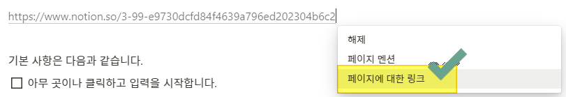 그 곳에 링크 주소를 복사해두고, Link to page 메뉴를 눌러 링크를 페이지에 추가한다.