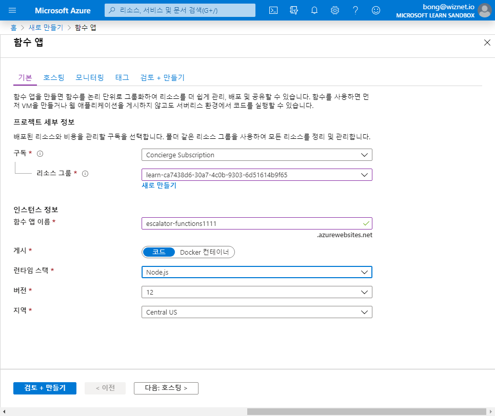 연습 - Azure Portal에서 함수 앱 만들기 - Learn