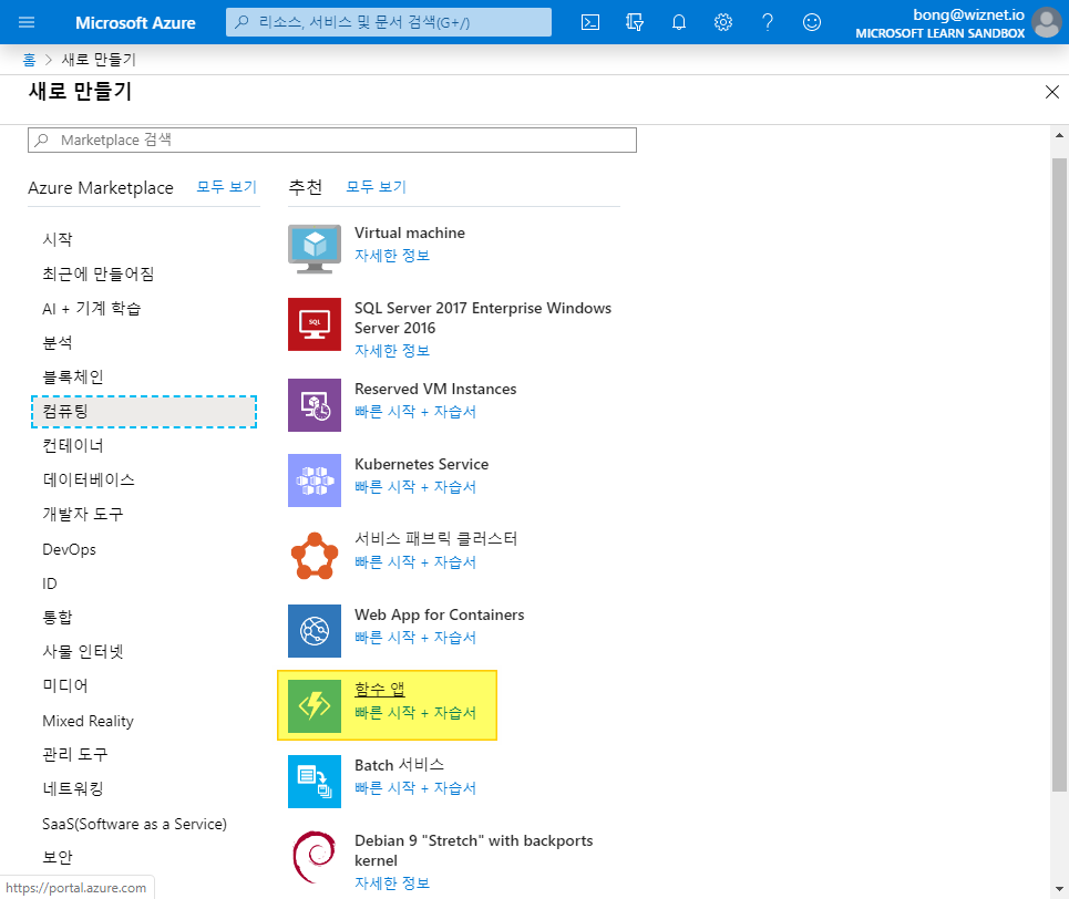 MS Azure Portal 에서 함수 앱 만들기 - 애저 서버리스 클라우드 컴퓨팅 실습