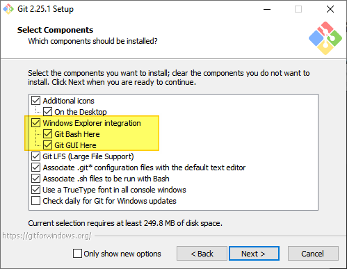 도스창에서 Git cli 를 하고 싶다면, 아래 체크박스를 꼭 해두길... Git Bash 를 쓰면 편리하다.