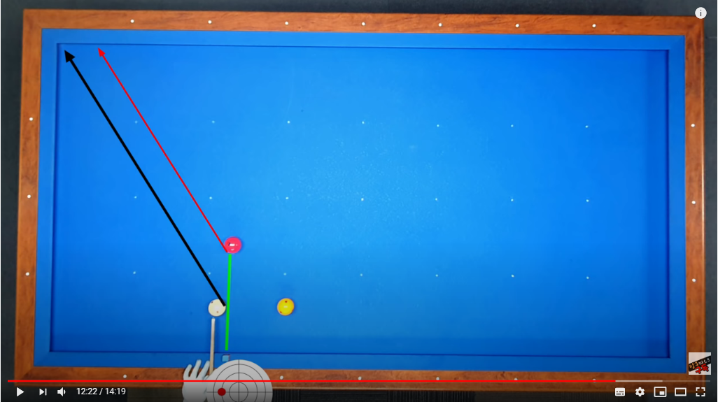 5. 이제 그 검은색 연결 선과 평행하게 수구를 치면 된다. 회전량은 2번에 구한 값을 그대로 사용하면 된다.