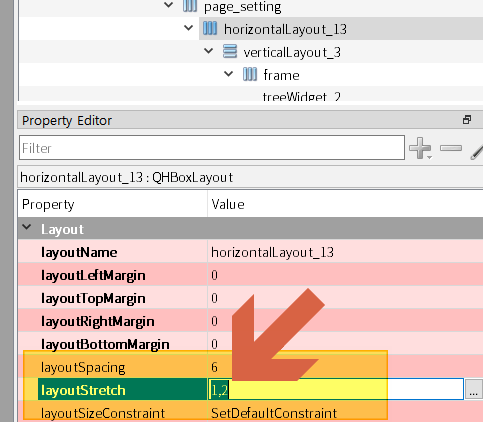 LayoutStretch 라는 속성을 설정하도록 되어 있다.