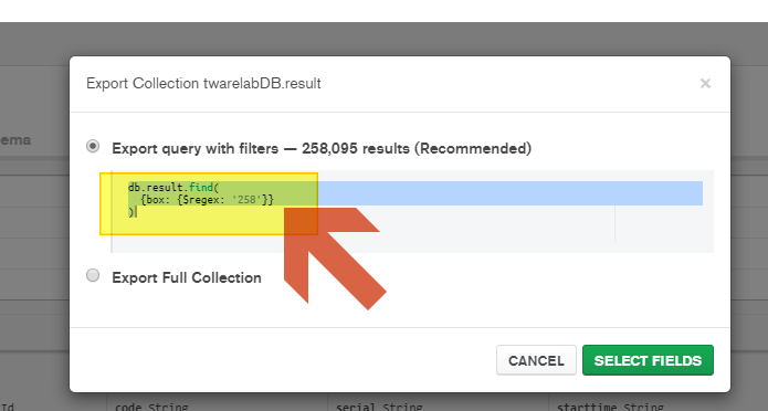 필드를 선택해서 Select output 을 선택하면, CSV 나 JSON 형태로 데이터를 내보낼 수 있다.
