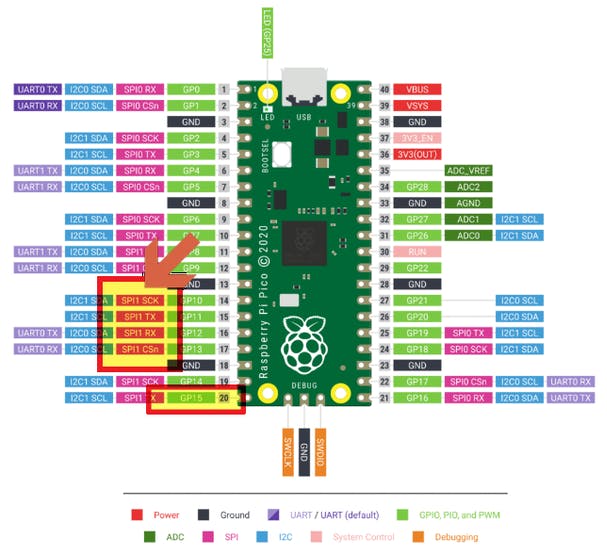 라즈베리파이 피코 RP2040 보드의 핀아웃은 아래와 같다. (어디서 가져왔더라 ^^;;;)