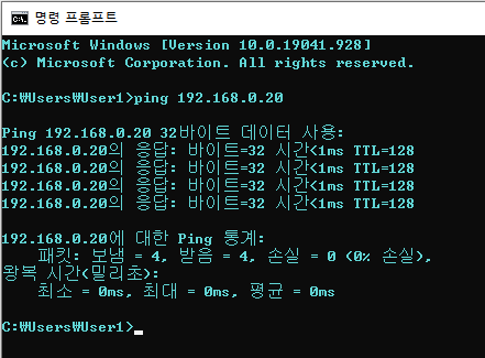 터미널에서 보면 192.168.0.20 이라는 IP 값을 할당 받은 것을 볼 수 있다.