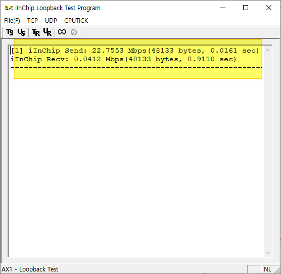 기본적으로 AX1 에서 먼저 데이터를 보내도록 되어 있고, 보낸 데이터를 다 받으면 속도를 계산해서 창에 출력해 주는 방식으로 되어 있다.