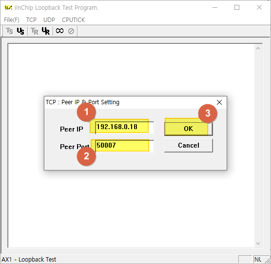 대상 IP 포트 를 넣고 OK를 누르면 연결이 된다.