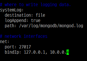 그래서 mongoDB 설정파일에서 IP를 입려해 줄 때 공인 IP를 넣었더니 접속이 안되고,