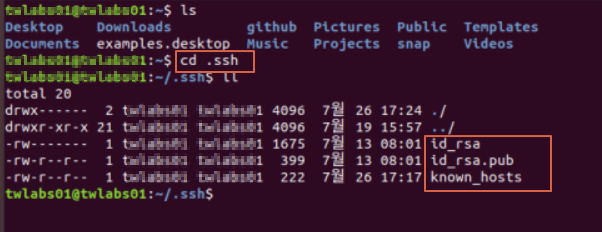 이미 만들었다면 자신의 홈 밑에 .ssh 디렉토리 아래에 xxxx.pub 이라고 설정되어 있을 확률이 높다.